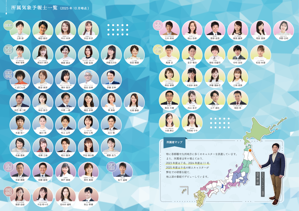 全国各地のテレビ局への気象キャスター派遣、天気予報の原稿提供などを行っております。