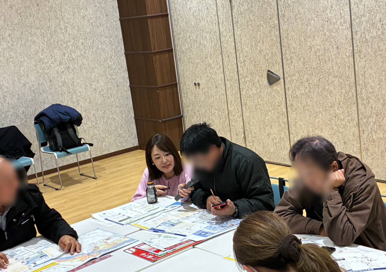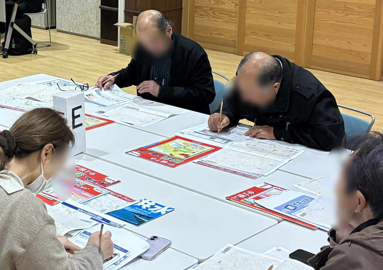 参加者全員でハザードマップを見て地域のリスクを知り、